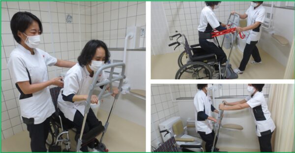 移乗支援器具のライザーベースを活用して、職員の負担を軽減しながらも身体重度の方への排泄支援に活かすことができます。