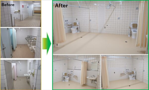 以前のトイレでは、下肢筋力低下や麻痺がある方が使用するには空間が狭く、職員の介助のしづらい環境でした。