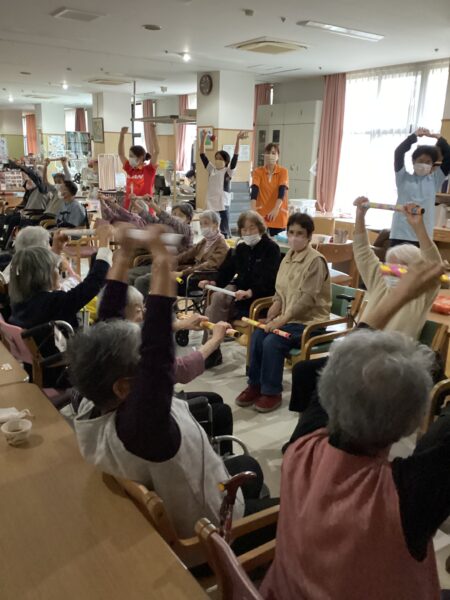 棒体操の先生(!?)ジュン先生をお迎えし、みんなで棒を使った準備体操!!