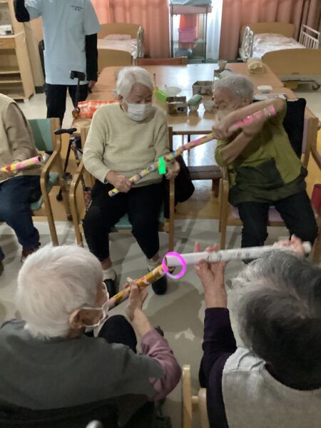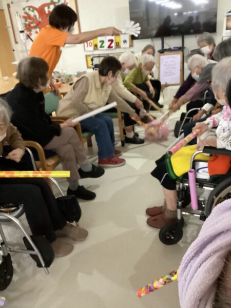 電気が使えず、室内は暗くなりましたが、それに合わせて体操&ゲーム大会を開催しました🎵
