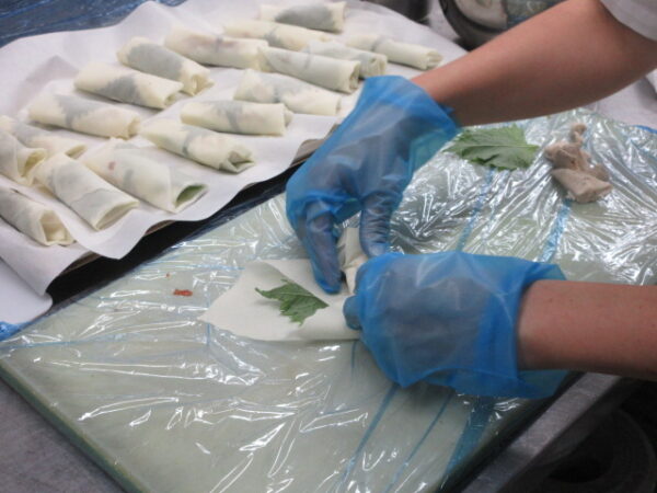 ワンタンも春巻きも一つずつ丁寧に包んでいきます。