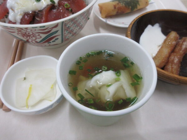 ユッケ丼のマグロはいつもお世話になっている魚屋さんに協力していただき、きれいなお刺身を納めていただきました🙏(ありがとうございます!)