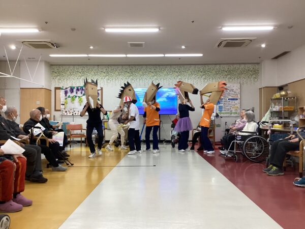 ご利用者さんに実況をしてもらいながら、皆さんにどの馬が1番になるか投票してもらいました!(^^)!