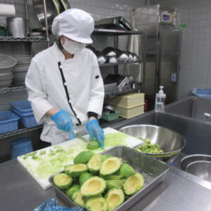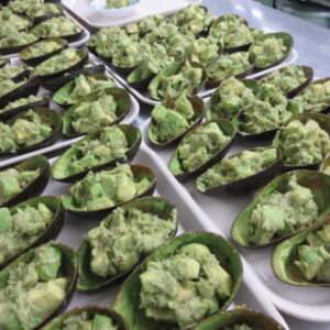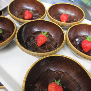 アボカドサラダも綺麗に盛り付けて、ゼリーに苺も添えて。