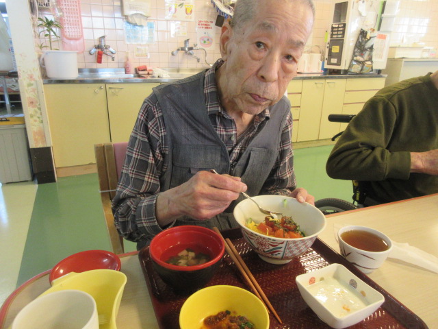 (きざみ食以降の方はお刺身は弾力があり誤嚥しやすいのでねぎとろを提供しました。)