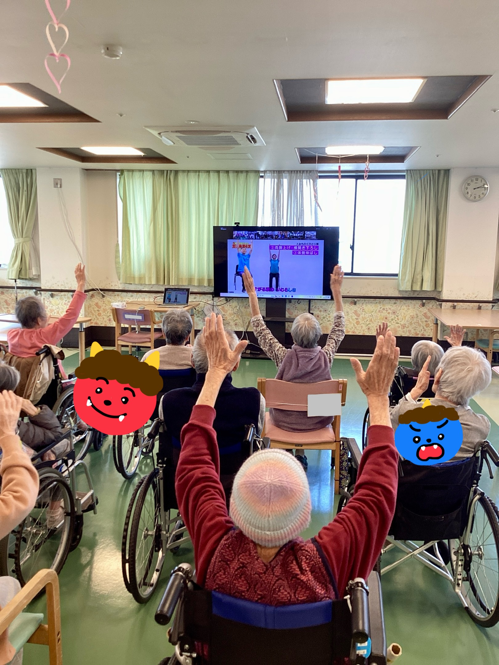 しっかりと体を動かす体操をして、今日は〇×クイズにも参加!!